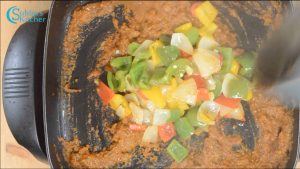 - Add the cubed bell peppers and sauté them for 3 mins. Do not over cook. The crunchiness of the bell peppers enhance the flavor