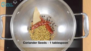 - Heat a pan. Dry roast all the Masala ingredients given. Dry roast till the coriander seeds have become golden brown and you get a nice aroma.
