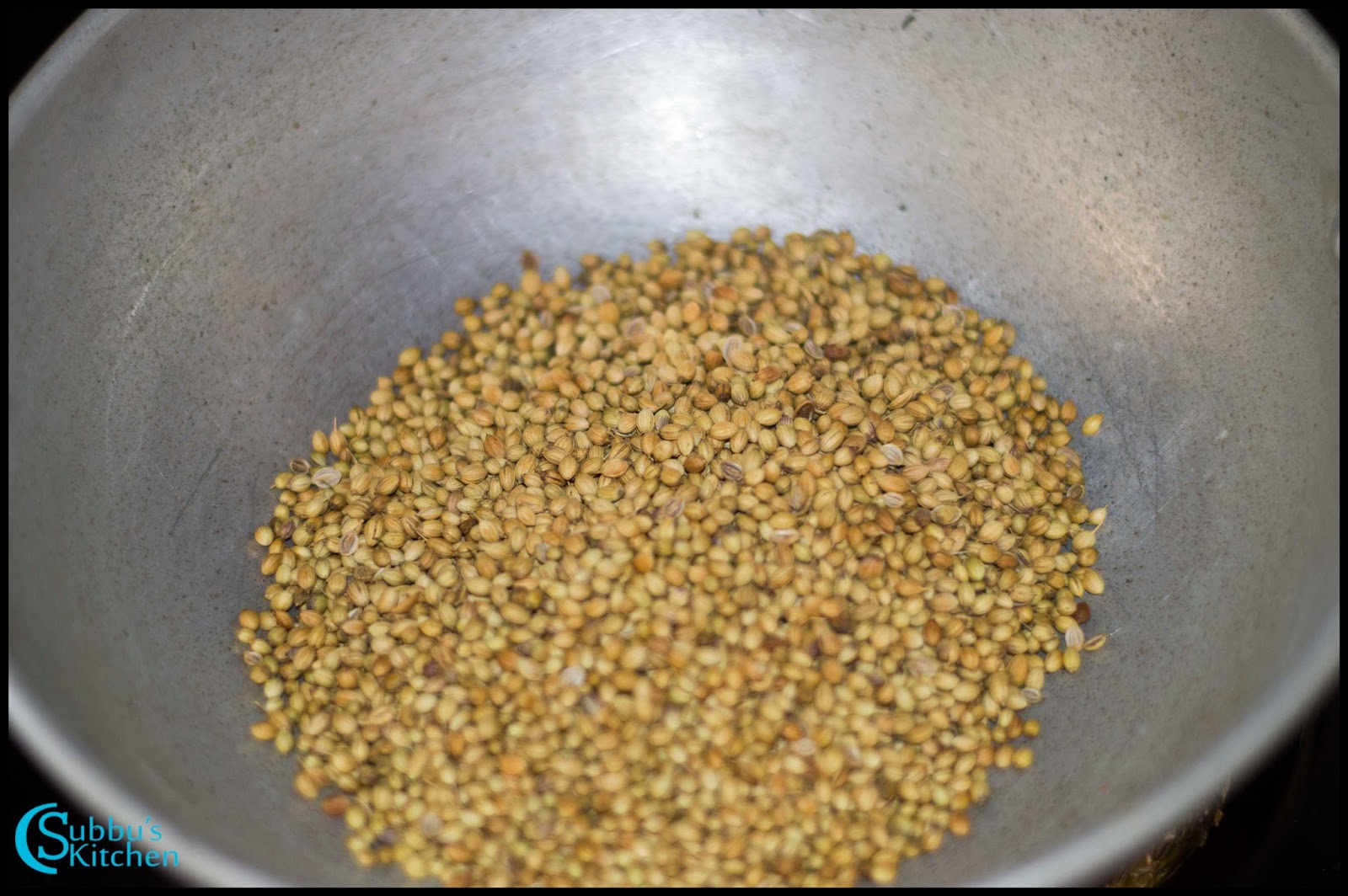 - If have a nice summer, then dry all the ingredients under the sun. If, we need to make sambar powder during winter or if we are staying abroad, then we have an alternate option of dry roasting each ingredients in a pan. Take a pan and add red chillies. Heat the red chillies in medium flame till they are hot. Do not burn them. Take these hot red chillies in a plate and set it aside. In the same pan, add coriander seeds and saute them till they are hot. Remove these roasted coriander seeds and add it to the plate having red chillies