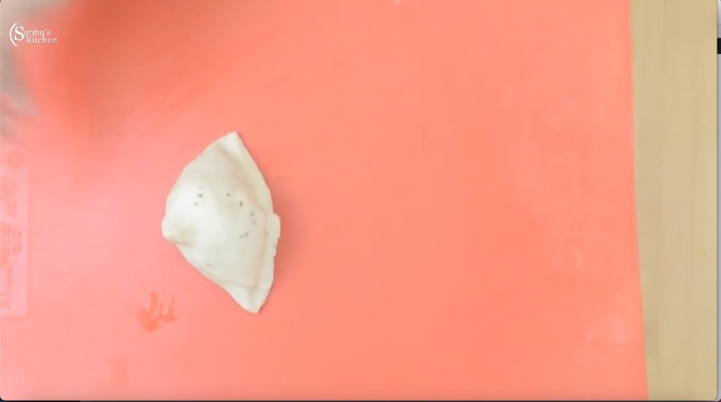 - Seal the edges. Refer the video for making perfect standing samosa.