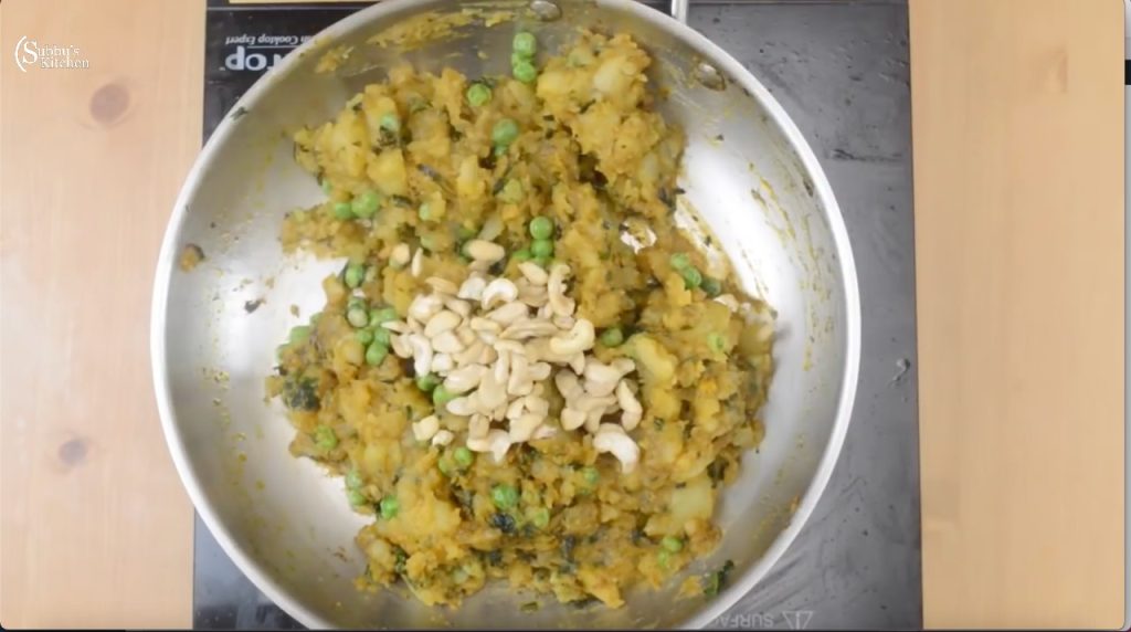 - Finally add cashews and then switch off the flame. Our Potato Filling is ready!