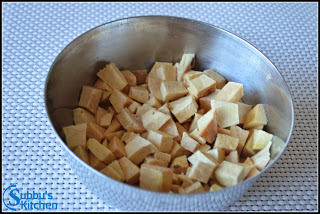 - Wash, clean, peel the Yam. Cut them in 1 inch cubes.