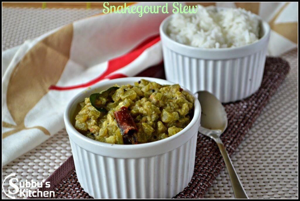 Finally snakegourd stew. Snake gourd is very high in water content and has a cooling effect on the body. Snake gourd is low in calories, fat-free, and good to include in weight-loss diets.Even diabetics can include safely to reduce weight by getting enough nutrition.It is rich in fiber to keep your digestive system healthy, wards off constipation with ease.