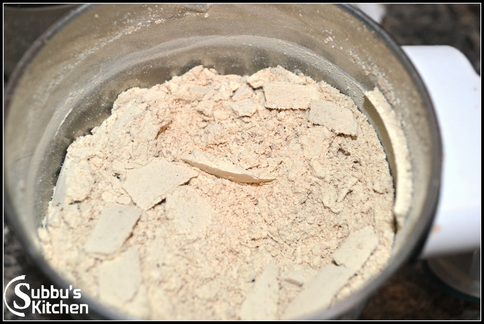 • Take the sukku (dry ginger) and break it into small pieces. Take the pieces in the mixer and grind it to a fine smooth powder.  I personally prefer to use the whole dry ginger and powder it as it will be more fresh than the store bought powder.