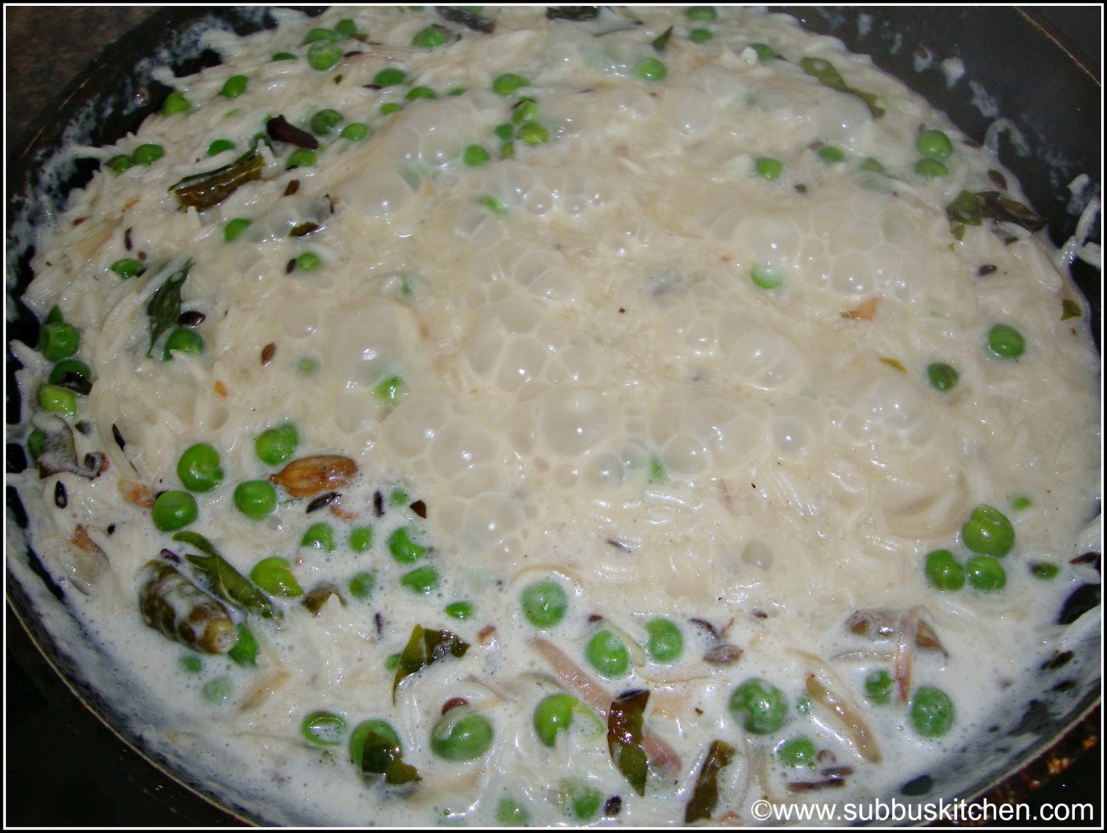 - Add coconut milk and mix well. Keep the flame high and cook for 2 minutes. After 2 minutes add salt and mix gently. Keep in high flame till the water is absorbed completely