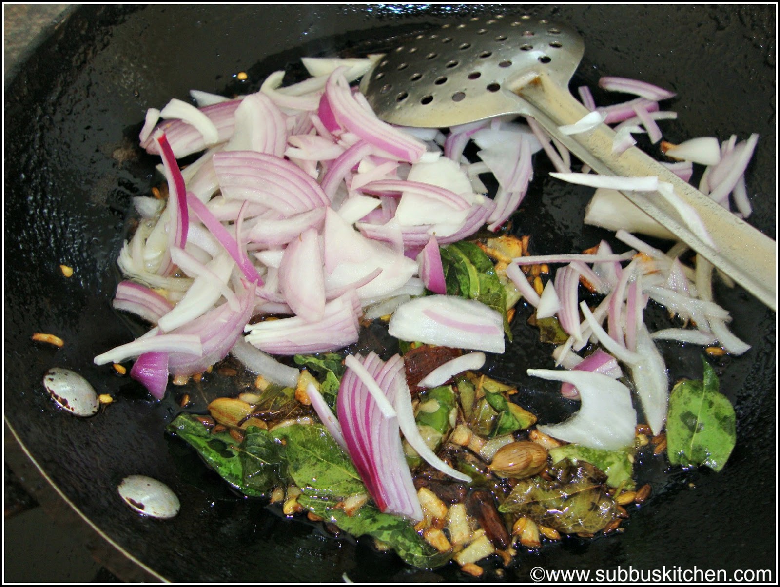 - Add cinnamon sticks and cardamom and fry it till the fennel seeds starts to sputter