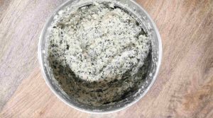 After 4 hours, drain water and take the urad dal to the mixer jar. Grind the soaked dal to a coarse paste. Add water only if needed. We need coarse and thick batter.