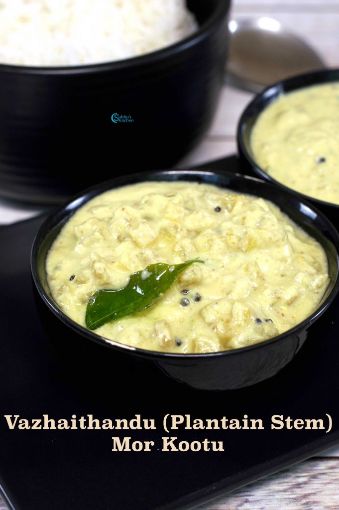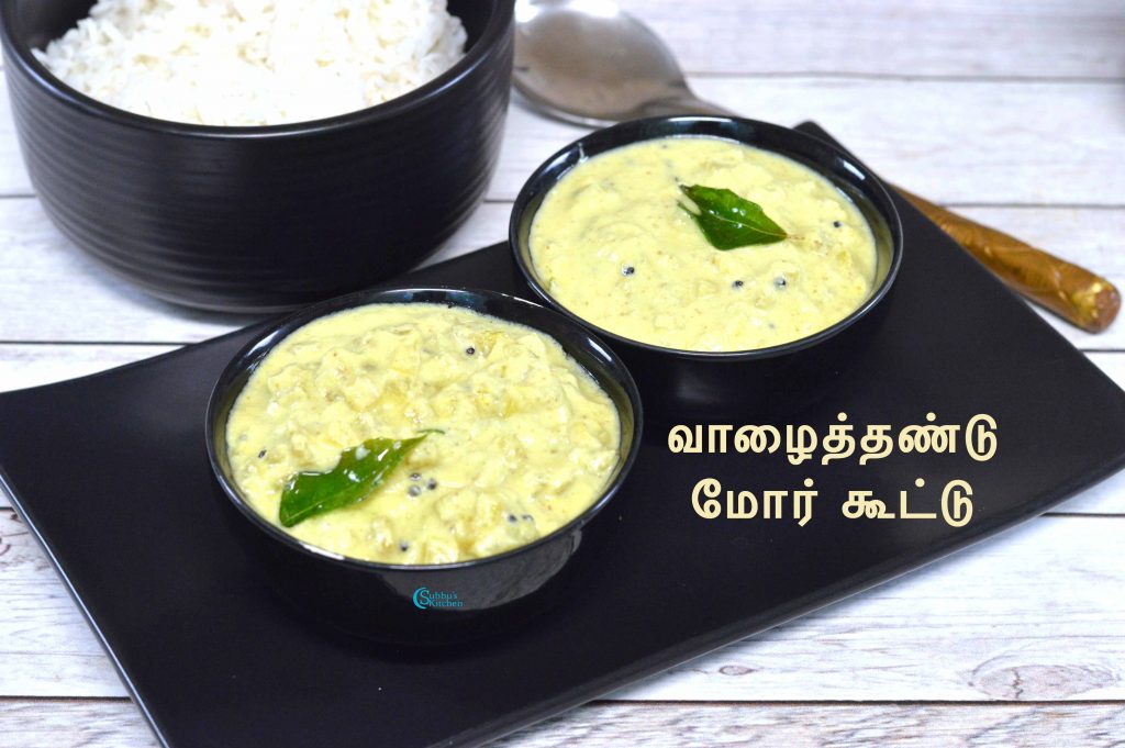 - Serve this delicious and healthy Vazhaithandu Mor Kootu with spicy Kuzhambu and hot steaming rice and enjoy the meal!