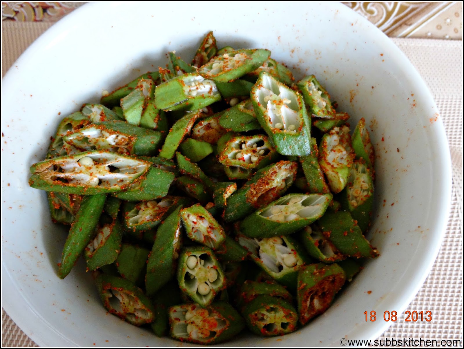 - Mix it evenly to coat nicely in each sliced bindi