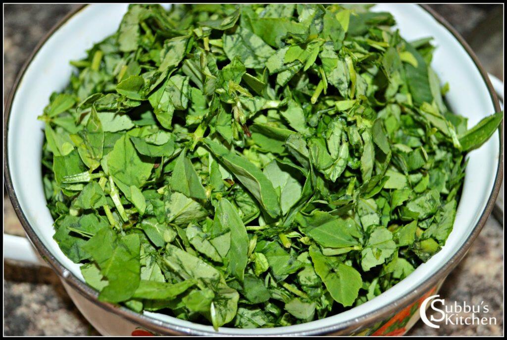 - Remove the leaves from vendhaya keerai and Wash and finely chop the keerai and keep it aside
