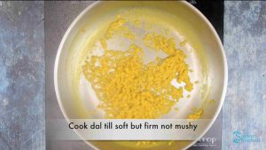 - Take the moong dal in a pan and add water and cook it. The dal should be cooked and at the same time it should not be smashed. The cooked dal should not stick with each other